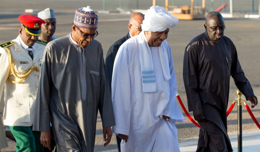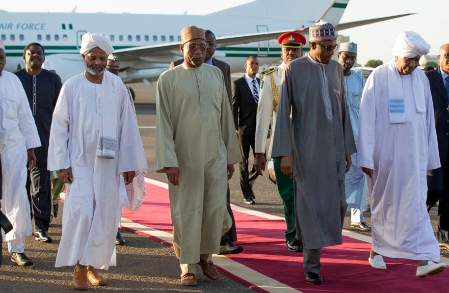Buhari being welcomed to Khartoum International Airport Sudan by